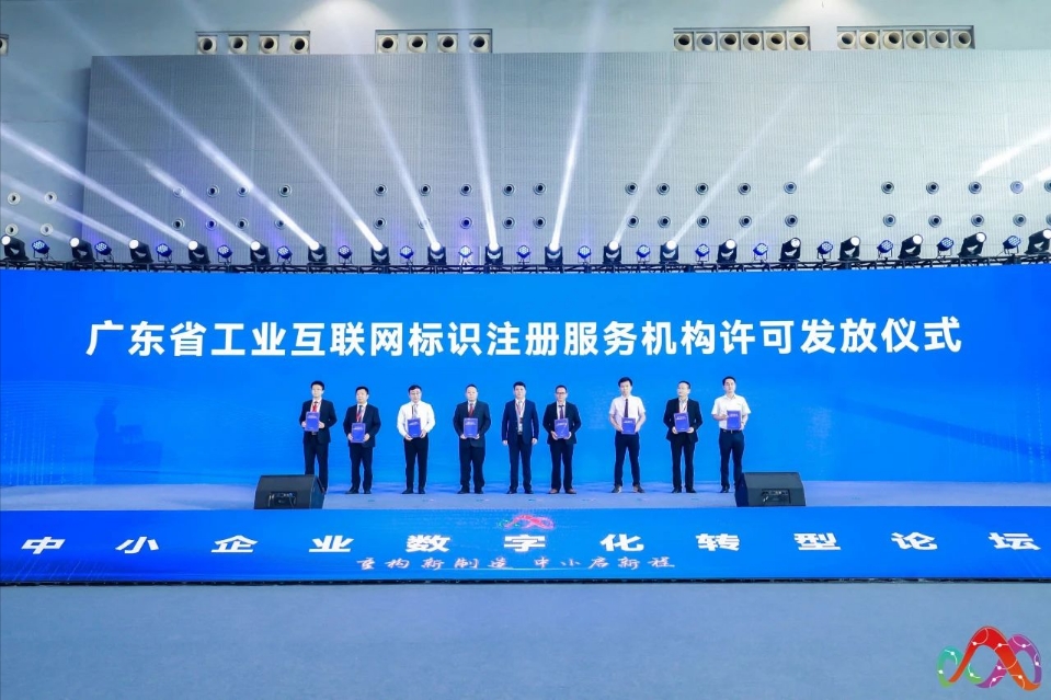 大會現(xiàn)場舉行了廣東省工業(yè)互聯(lián)網(wǎng)標(biāo)識注冊服務(wù)機(jī)構(gòu)許可證發(fā)放儀式,為中山市鏵禧電子科技有限公司等8家機(jī)構(gòu)授牌。