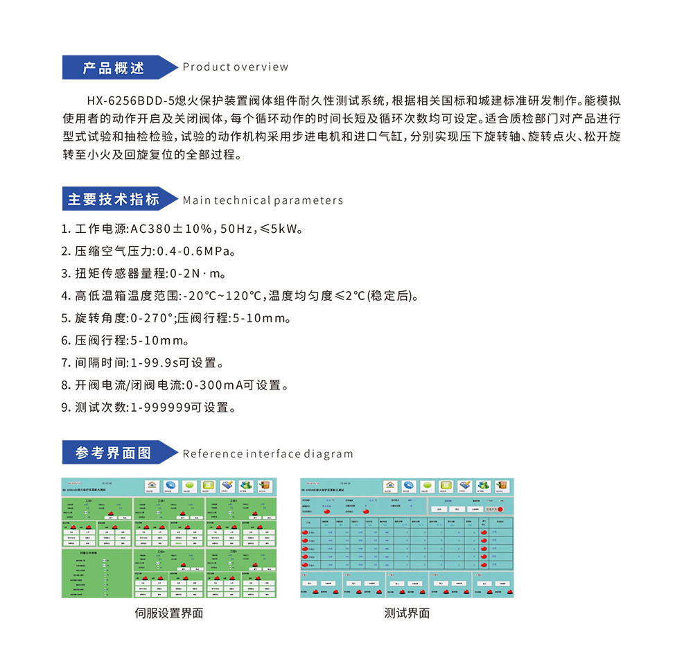 HX-6256BDD-5熄火保護裝置閥體組件耐久性測試系統